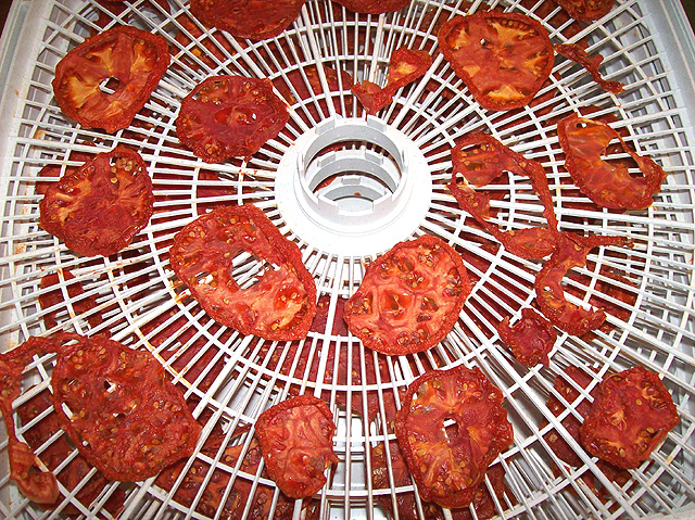 At the end of this year’s harvest, I had mounds of tomatoes. Some went into the freezer, I canned a bunch, and the last of ’em went straight into the dehydrator.
