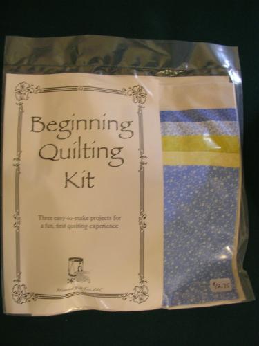 The Beginning Quilting Kit is a great kit for anyone who wants to learn to quilt, whether young or old. Included in the kit are several large squares of fabric, a large piece of muslin, polyester batting, a needle and thread and instructions for all three projects. All the quilter has to provide is a ruler, a pen, scissors, and pins. I would also recommend working with a thimble when doing this type of hand-stitching.