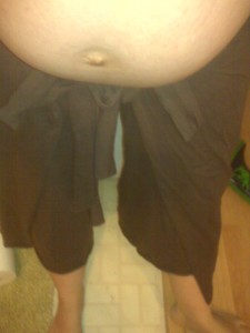 It was amidst racks of silken imports on one of these nights when I found them. Wrap pants. It was like the Holy Grail of clothing for pregnancy. Not labeled for maternity with some cheesy title trying to make “big as a house” sound nice, but not cut for the body of a twenty-something runway model, I spread out the fabric and watched in awe as it kept coming. My eyes probably welled up a bit, and I took in all of the information I could before waddling out quickly (read: awkwardly), grabbing my family and buzzing with shapes and numbers all the way home.